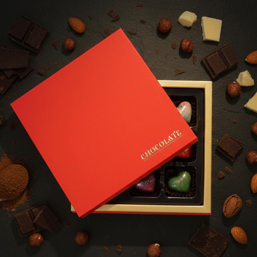 Từng viên socola được làm từ socola cao cấp, kết hợp khéo léo giữa socola đen và socola trắng, cùng các loại nhân hạnh nhân sấy và hoa quả sấy tự nhiên, mang đến hương vị hài hòa, mềm mịn và đầy cuốn hút.