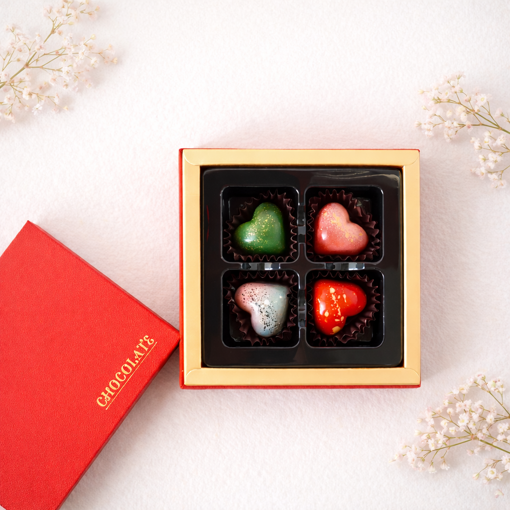 Socola Valentine Trái Tim Yêu Thương là món quà nhỏ xinh nhưng chứa đựng trọn vẹn cảm xúc ngọt ngào dành cho người bạn yêu. Hộp socola gồm 4 viên bonbon hình trái tim với màu sắc rực rỡ, thiết kế tinh tế, tượng trưng cho những cung bậc cảm xúc trong tình yêu: ngọt ngào, nồng nàn và ấm áp.